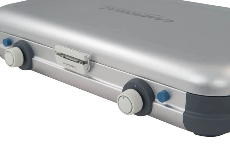 The Camping Kitchen® 2 CV Piezo is the perfect companion stove for any family trip, either for a quick weekend away or for a longer stay. It is a light and easily portable two burner stove. The slim design, with built-in carry grip, ensures space-saving when packing your car or caravan.