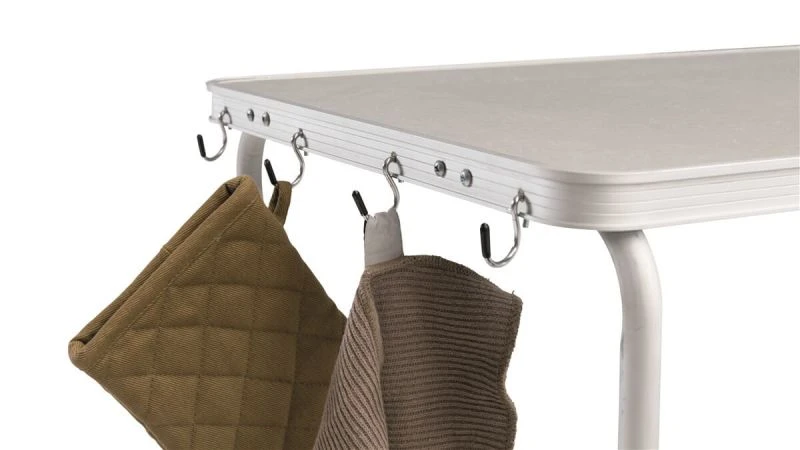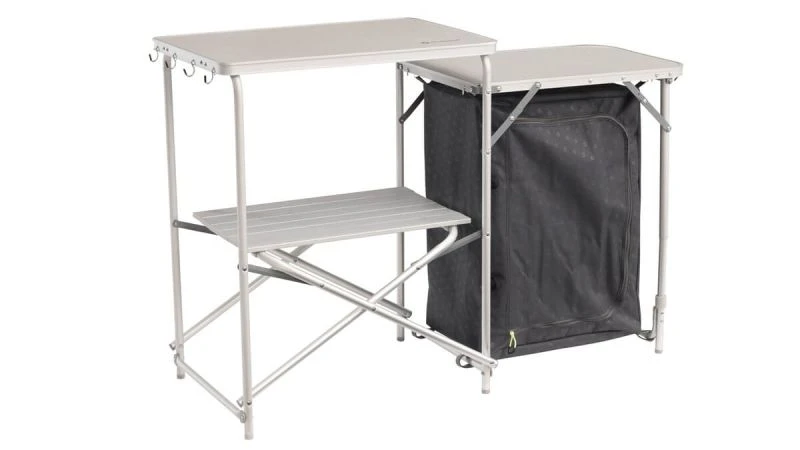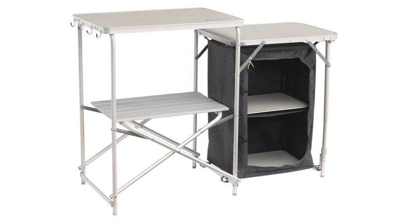 This Samos kitchen table is lightweight and is handy for storing things on the two large laminate worktops. It also comes with a handy two shelf cupboard with a zip door.